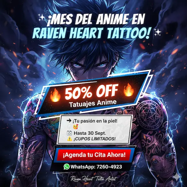 ¡Hola a todos! Soy Roxini Fallas, artista del tatuaje en Raven Heart Tattoo. Mi pasión por el arte me ha llevado a especializarme en el realismo a color, Anime y en fine line, técnica que me permite capturar la esencia y la belleza de cada diseño de una manera vívida y detallada.